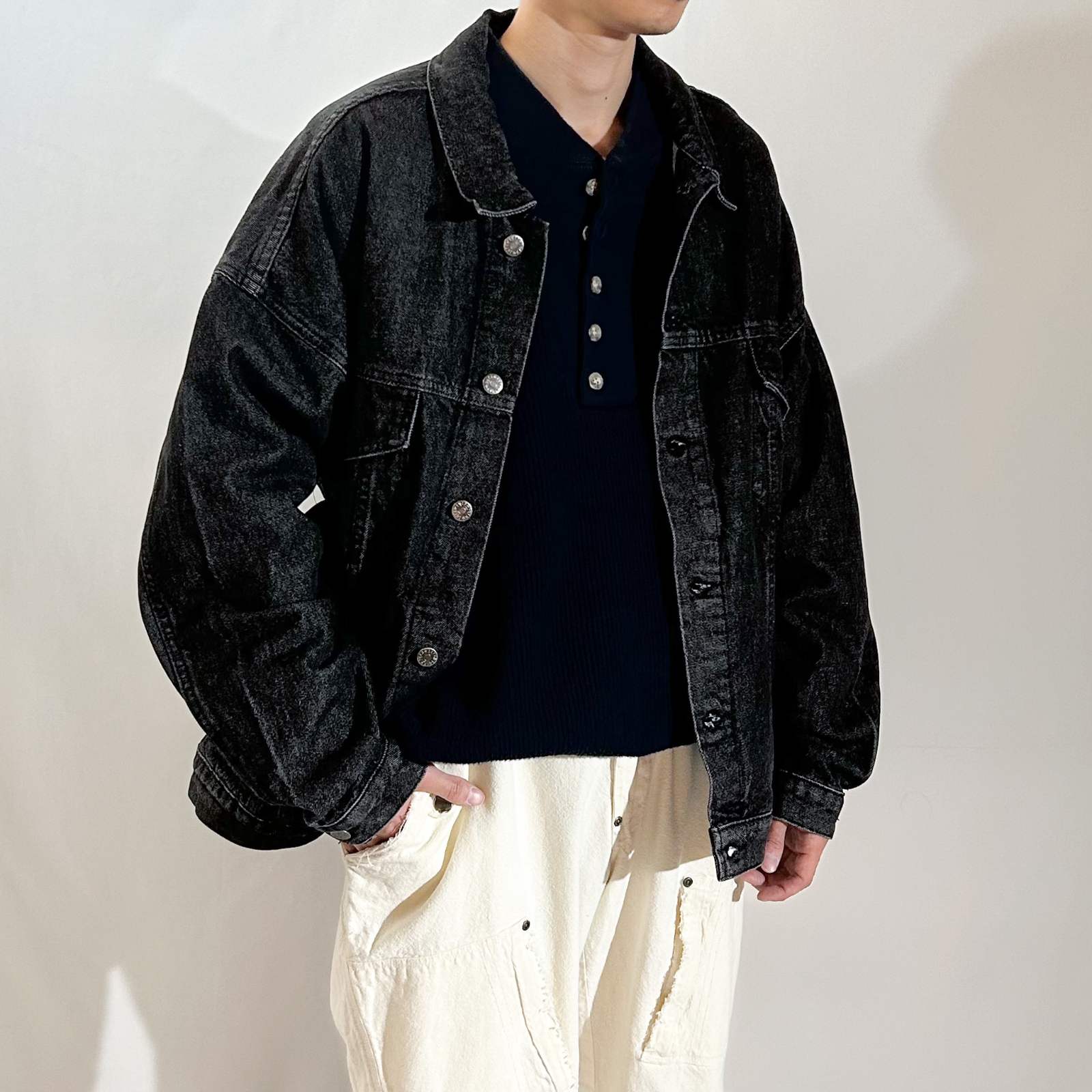90年代アメリカ製先染ブラックジャケット。身幅もゆったりなレイヤーしやすい好条件。さすがにこの条件は買いではないでしょうか?この値段で90年代リーバイスの先染はもう買えないのでここらへんがかなりおすすめ。