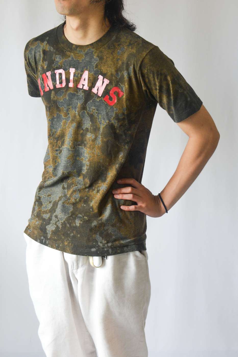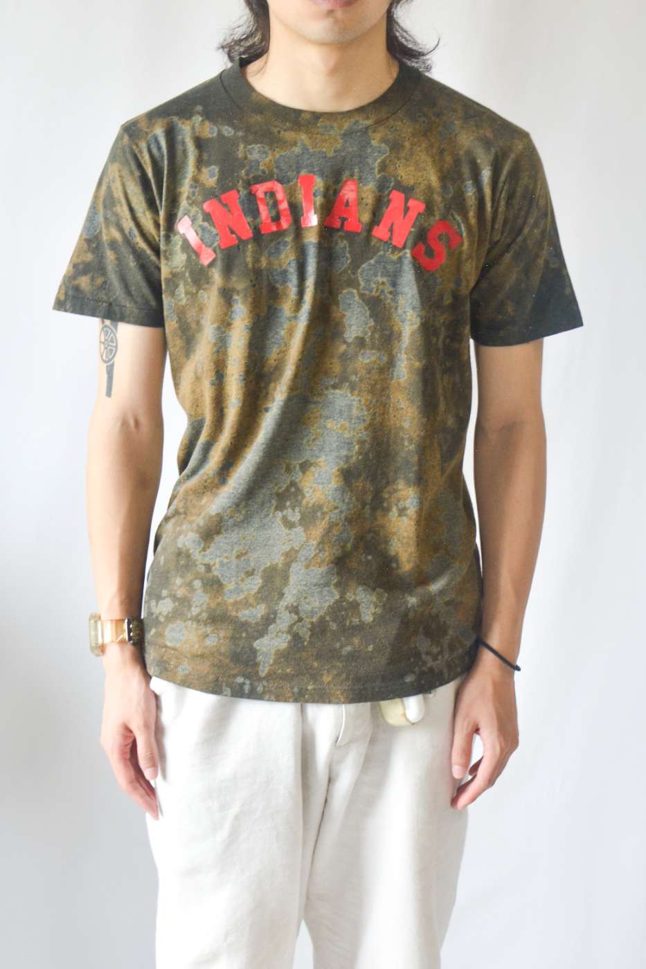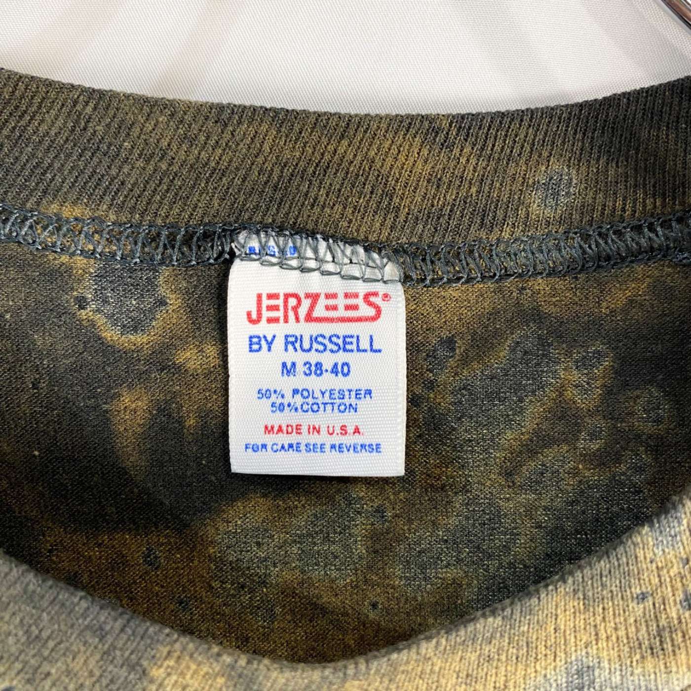 タイダイ染めされたJERZEESのプリントTシャツ。暗めの色に雰囲気がありますね。