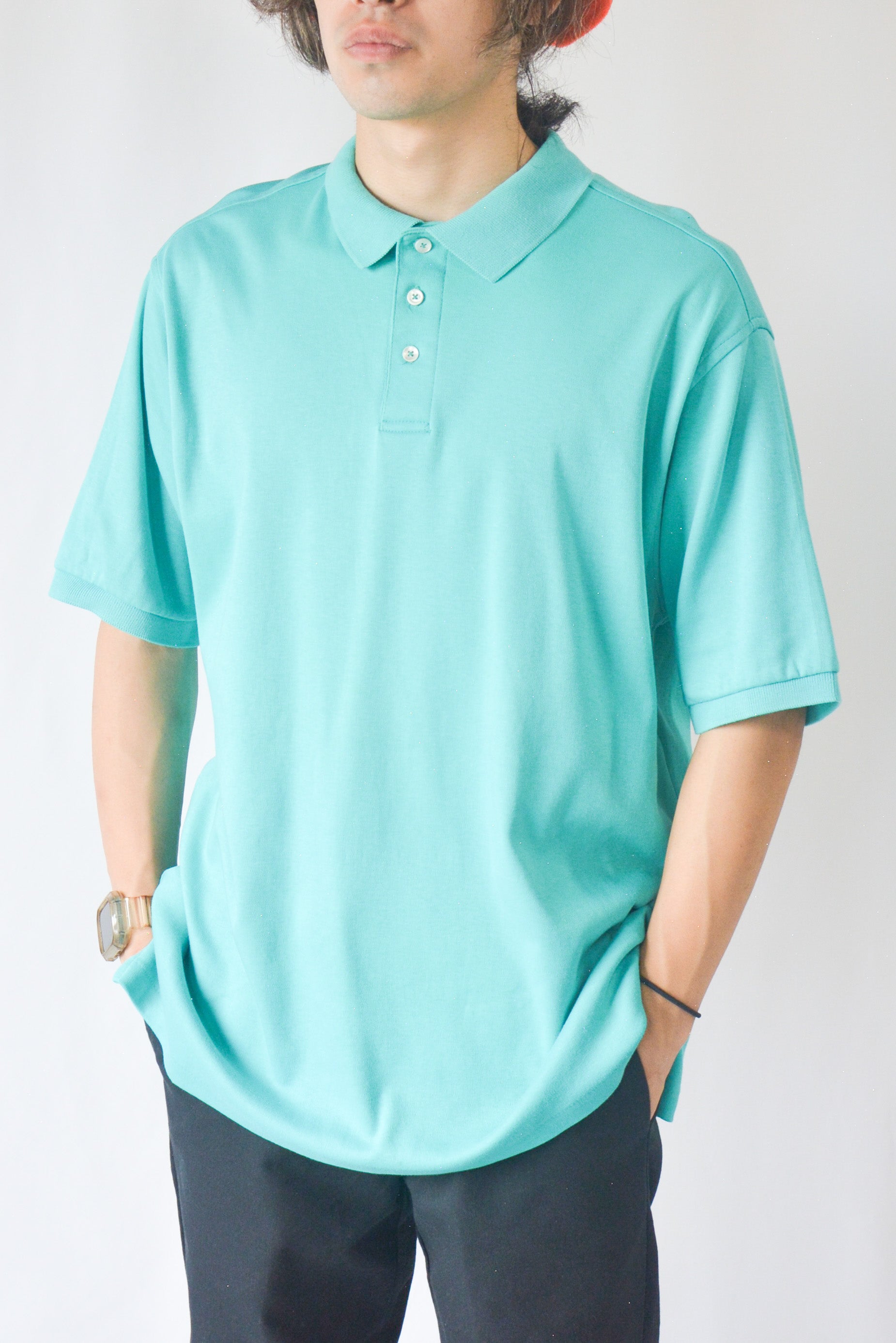 アメリカ製のLAND'S ENDの半袖ポロシャツ。無地のポロシャツでとても着やすいですね。