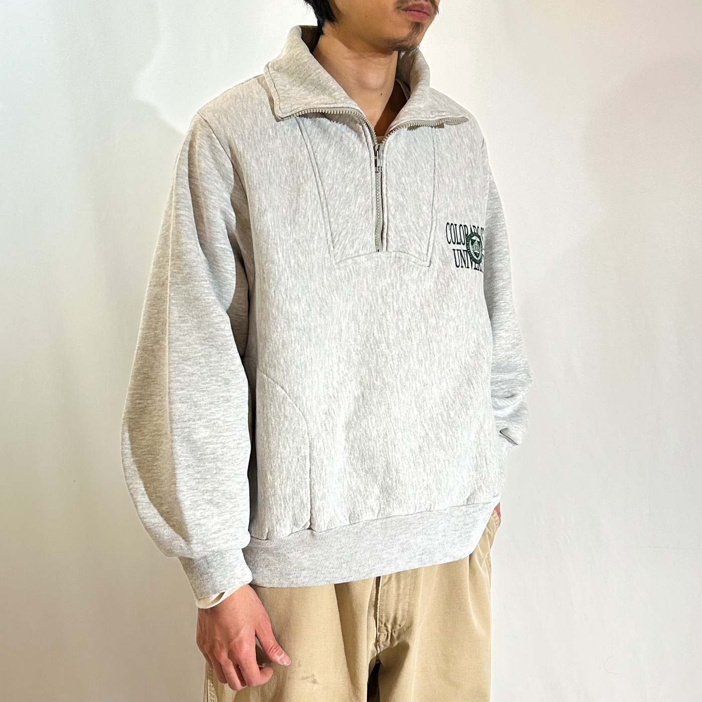 90's "made in USA" MVP セパレートポケット ハーフジップ カレッジ スウェット シャツ