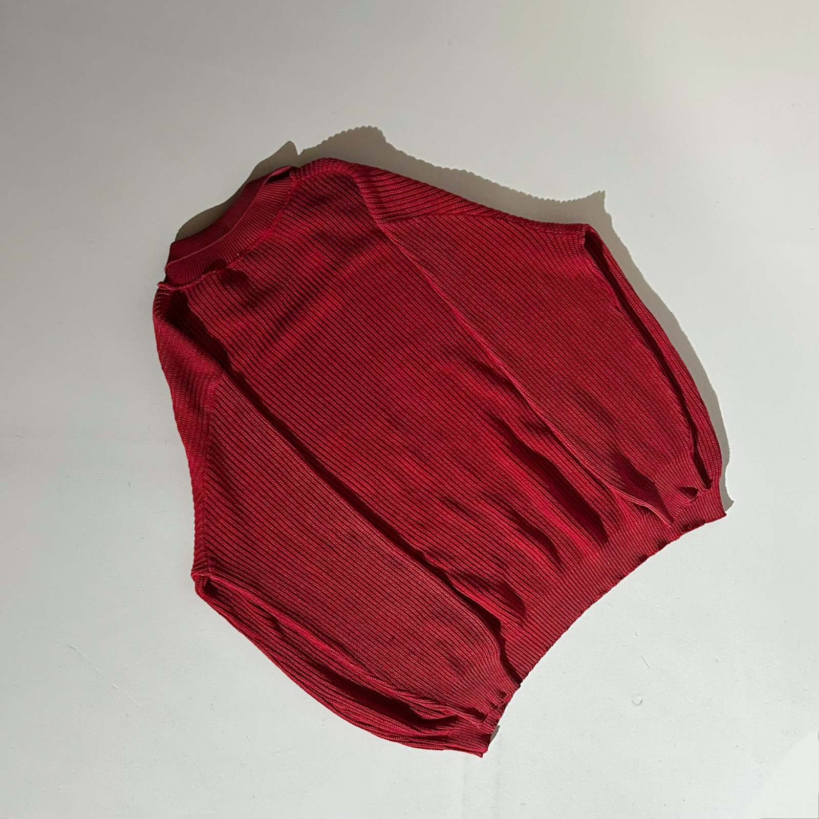 【Webスタッフ奥野おすすめ商品】バイイングに携わる身としては何かとタブーカラーな赤ですが、個人的にはとても好きな色の一つ。ゆるっとしたスキッパーニットはレディースアイテムの2XL。コットン素材のおかげでゆるりと重みのあるシルエットがツボです。ユニセックスなゆったりとしたスタイルがお好きな方にぜひ。