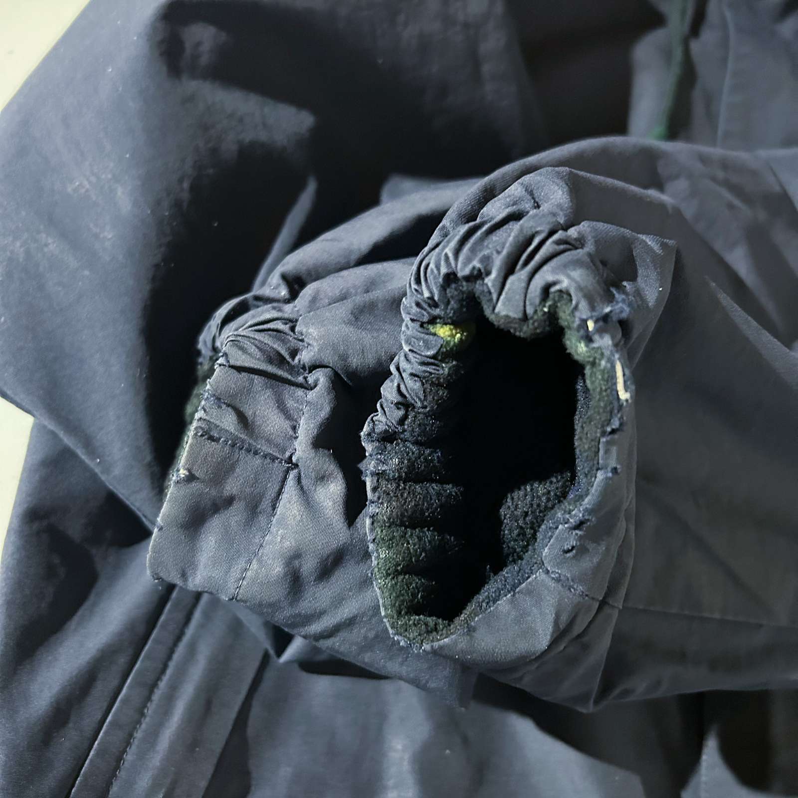 Bランク ナイロンボディ側に両袖口のダメージ、全体的に光沢した使用感、右ジップにリペアが見られます