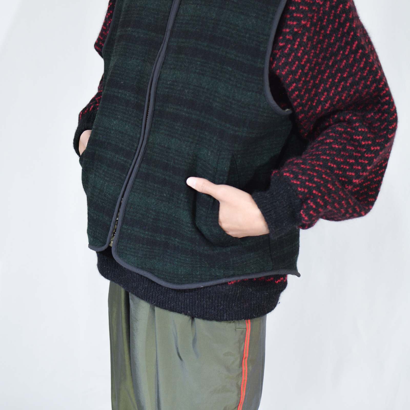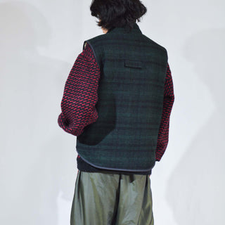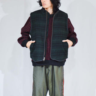 エルエルビーンの90年代頃のチェックベストになります。黒と緑の配色のタータンチェックが大人な落ち着いた雰囲気を演出してくれます。 裏地がボア仕様の為、肌寒くなる季節に活躍してくれるアイテムですね。