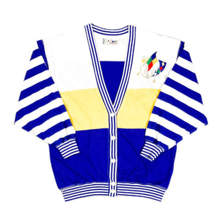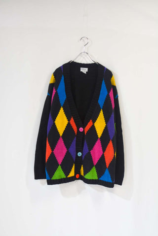アーガイル柄のニットカーディガンになります。 カラフルなボタンとアーガイル柄が可愛らしいですね。 素材はコットンとリネンの棍棒素材のため、耐久性・吸湿性・吸水性に優れています。 デザイン性にも機能性にも優れた優秀アイテムです。