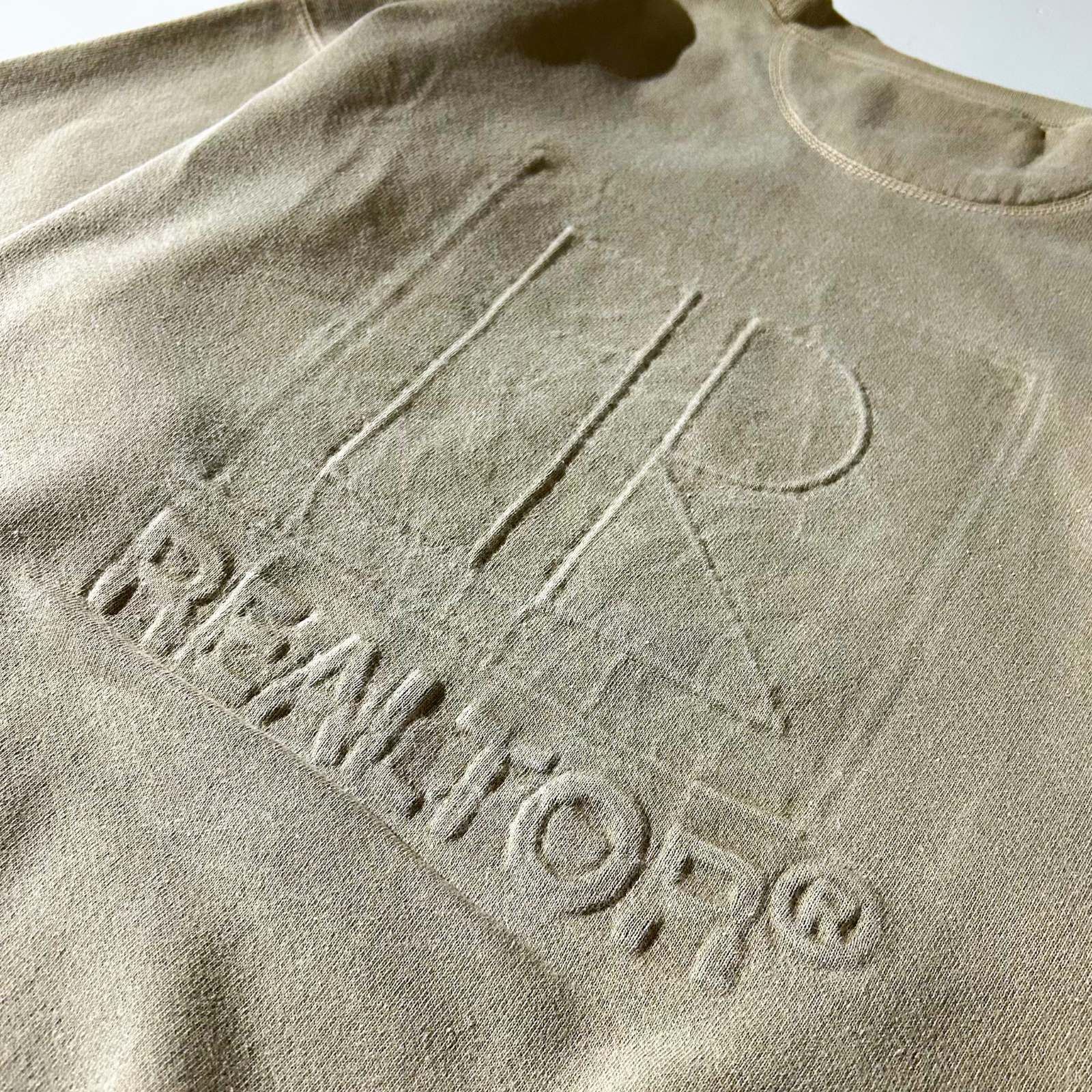 古着ではデニムジャケットでは見かけますが、スウェットでエンボス加工っていうのが良いかなと。 新品のブランドではスウェットにもエンボス加工は見かけますが、90年代頃のブランドでアメリカ製って所がこのアイテムの魅力。