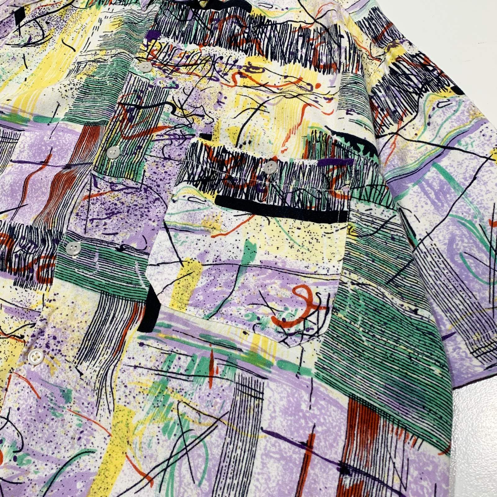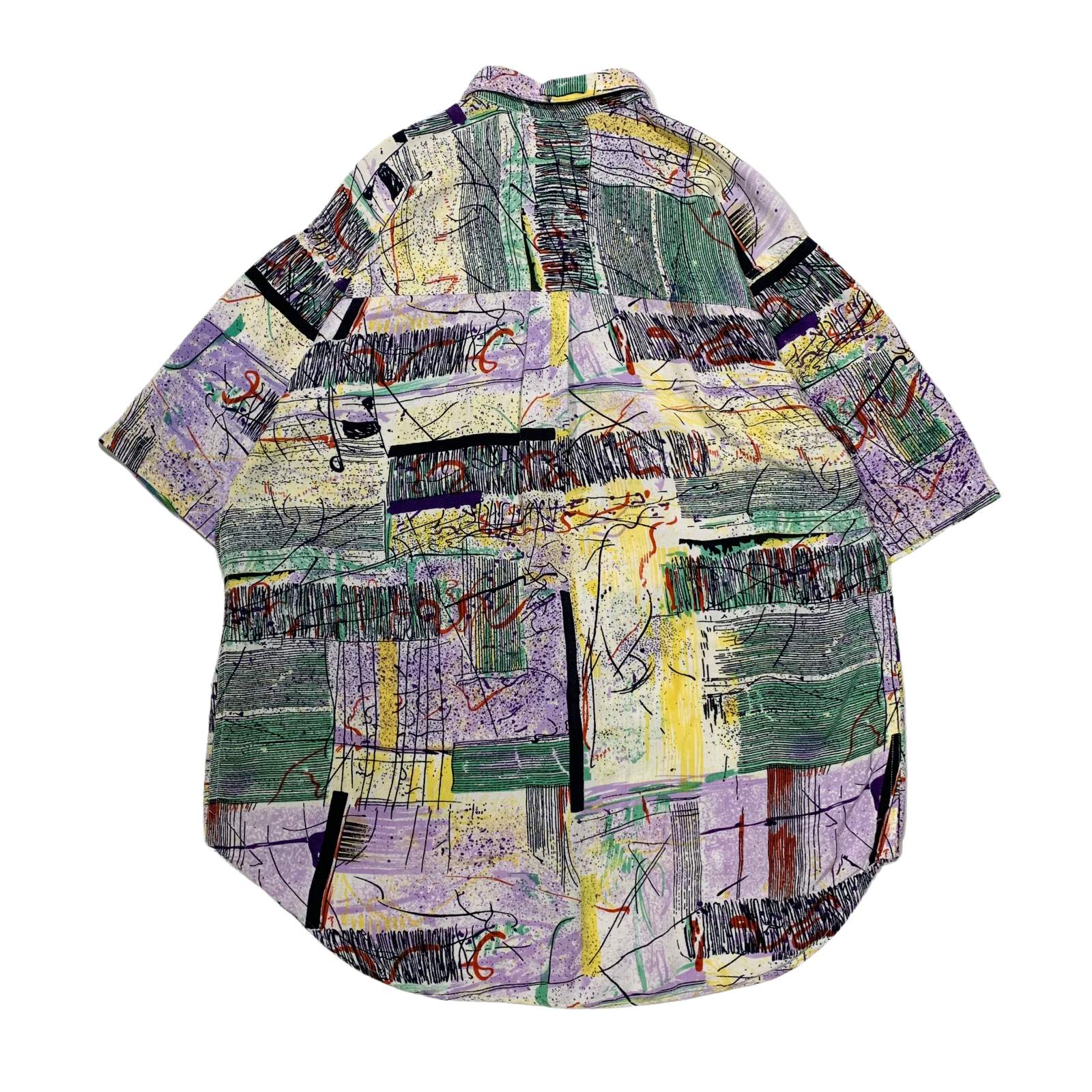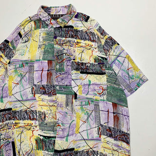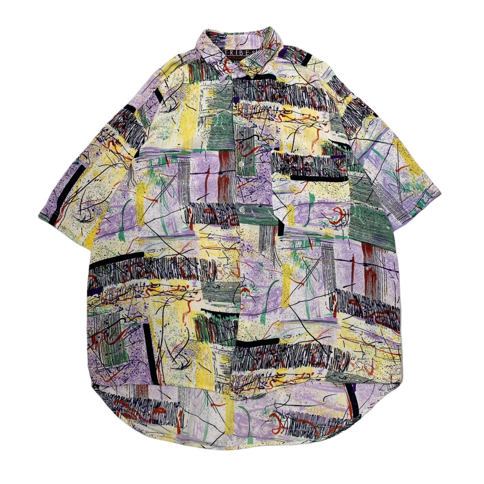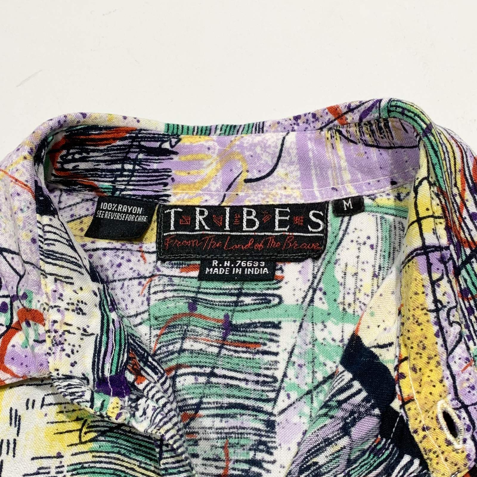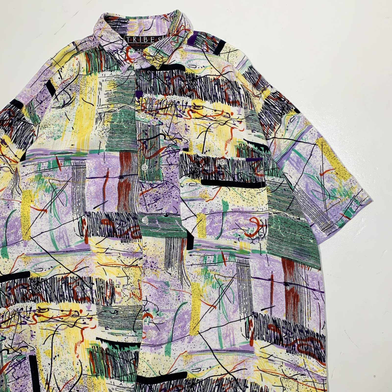90's TRIBES インディアンレーヨン アート柄 S/S シャツ