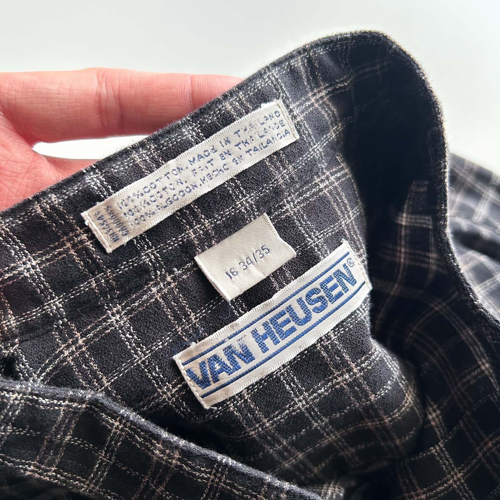 90's Van Heusen ブラック×ホワイト スタンドカラー チェック L/Sシャツ
