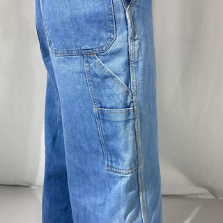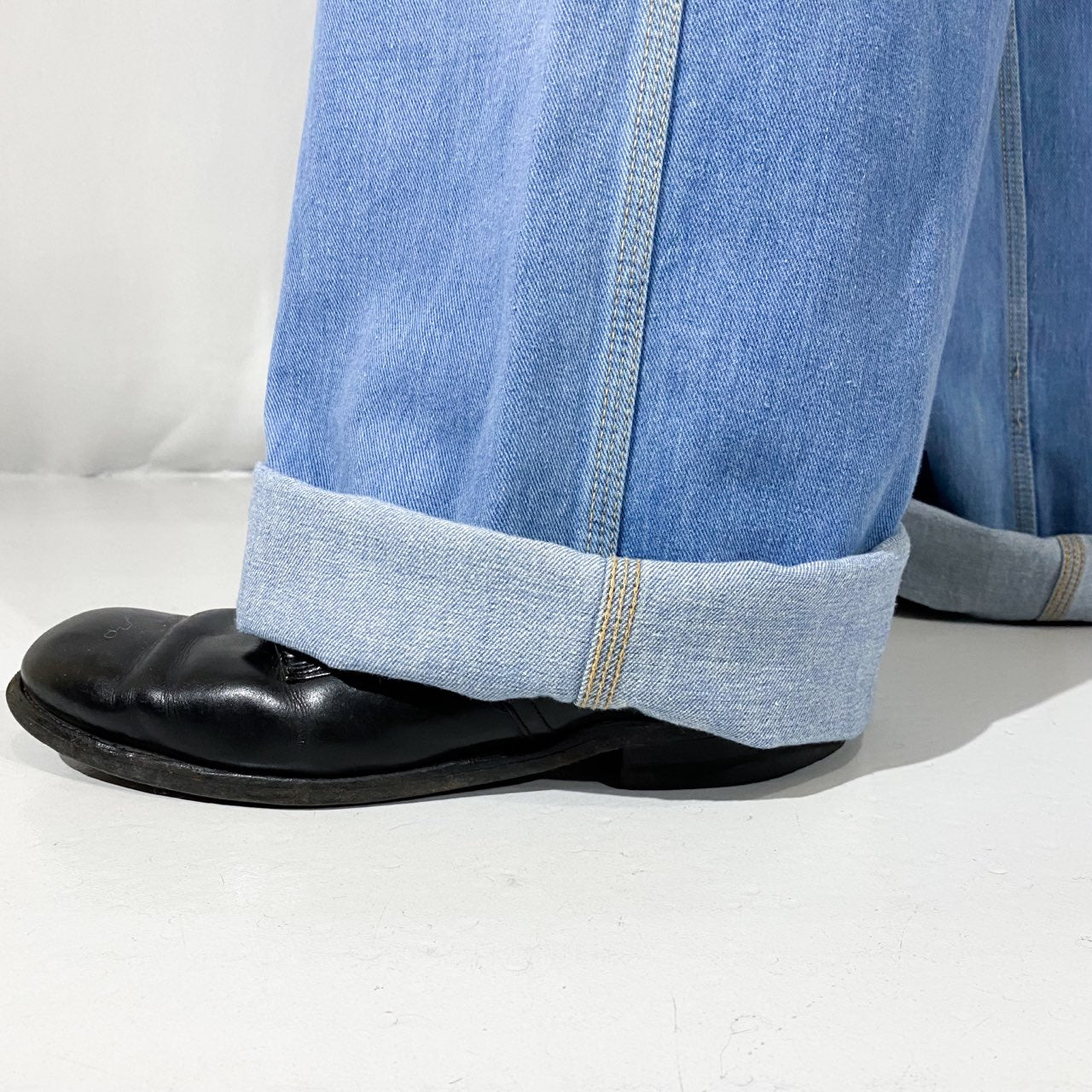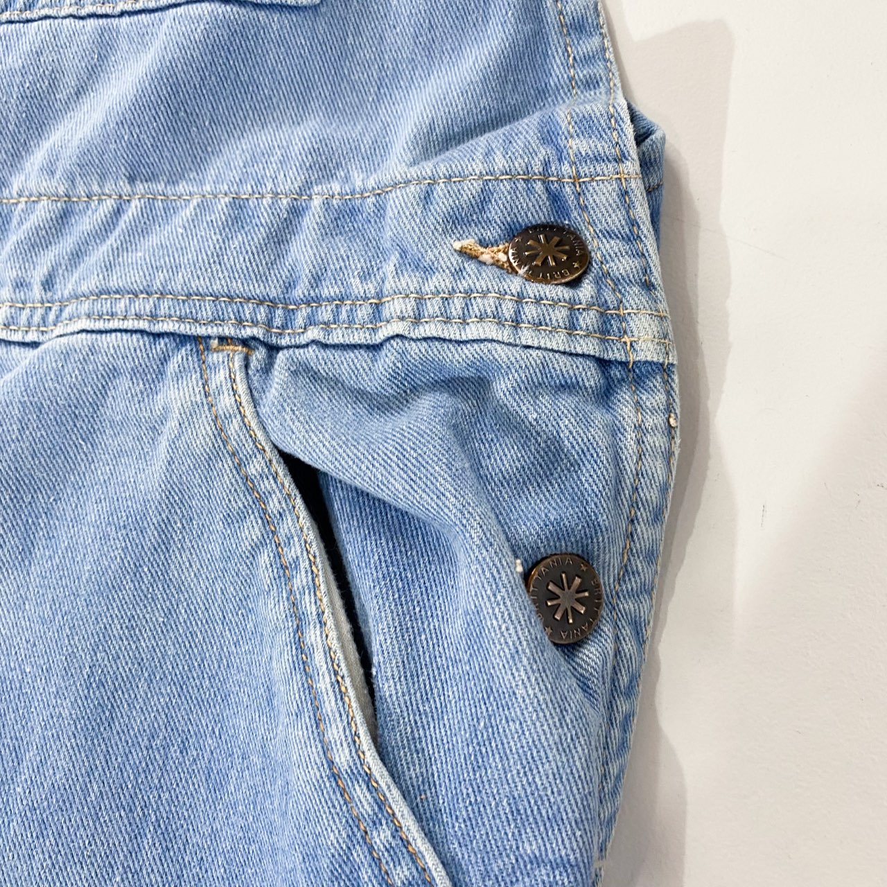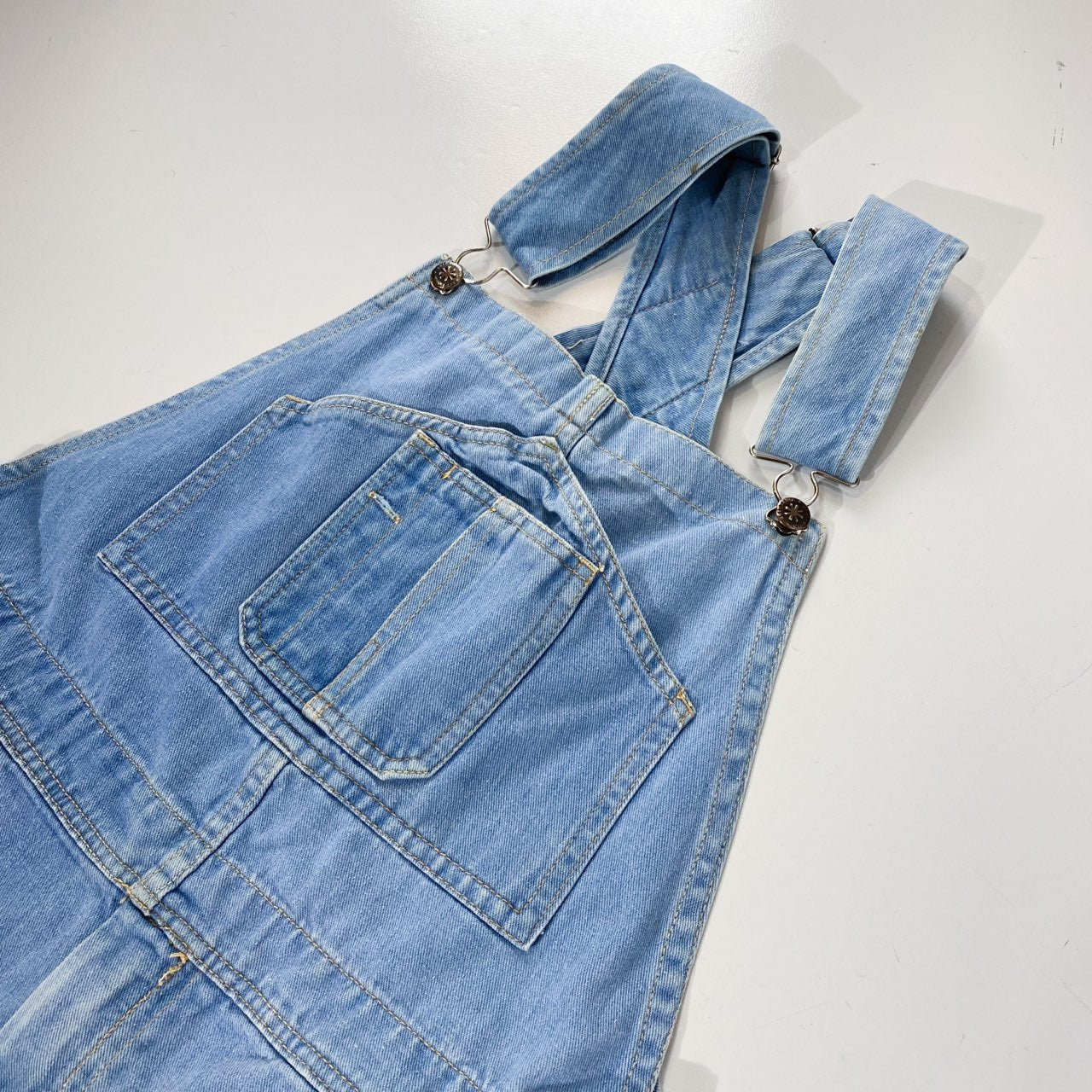 ウエスト:88cm(34.5インチ) 総丈:161~170cm(調節可能) 股下:88cm(34.5インチ) 裾幅:32cm 前身頃:61cm(胸あてから股上まで) ワタリ幅:31cm