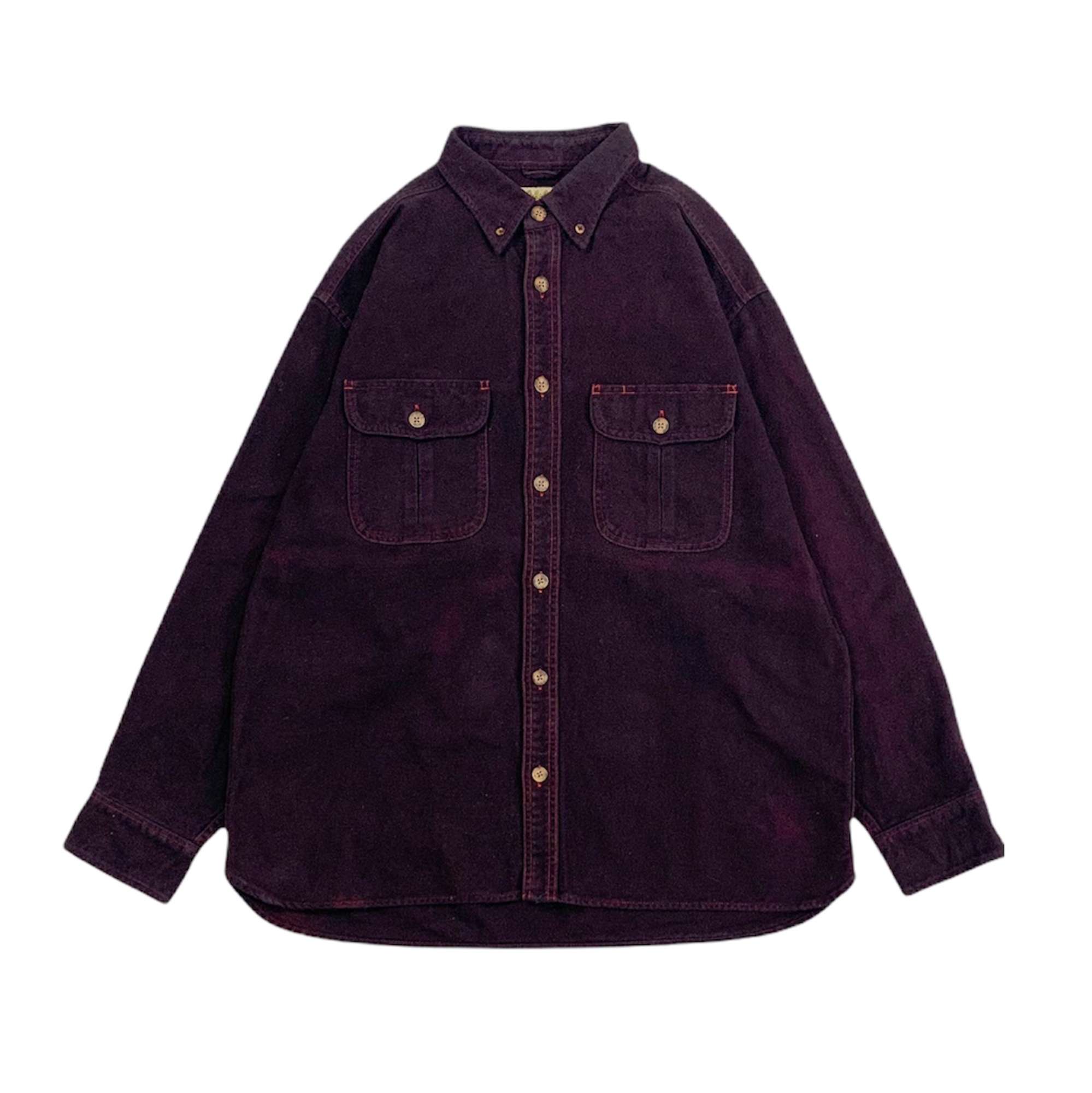 レッドカラーのシャモアシャツをブラックのオーバーダイ(後染め)をした1枚です。