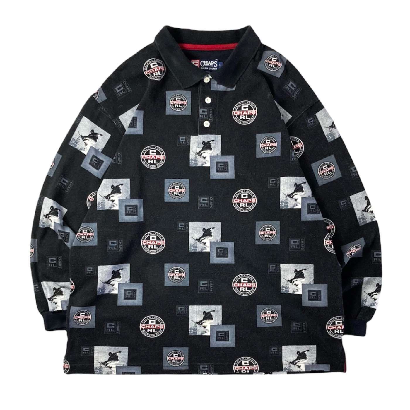 90's "made in USA" CHAPS L/S 総柄ポロシャツ