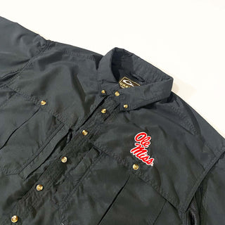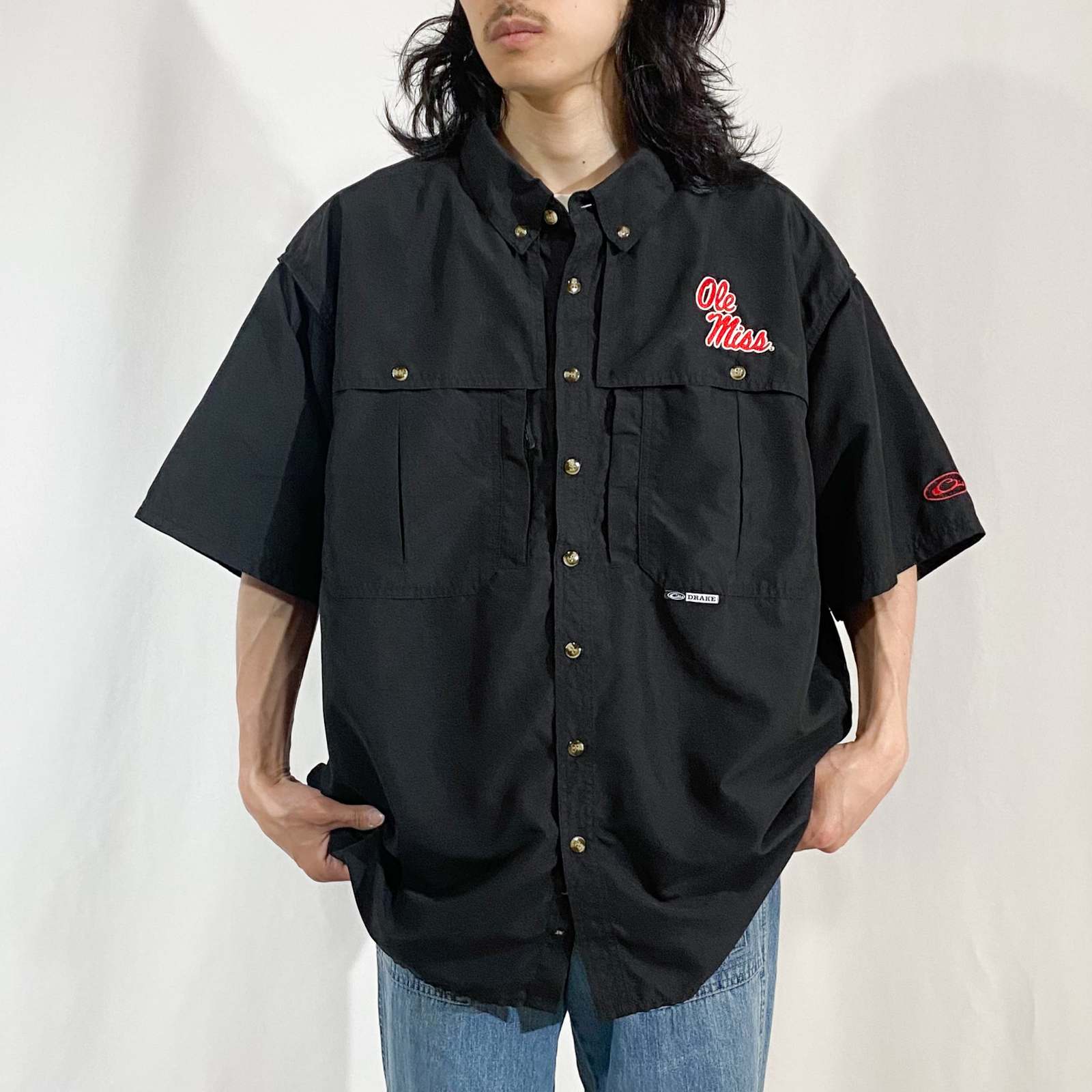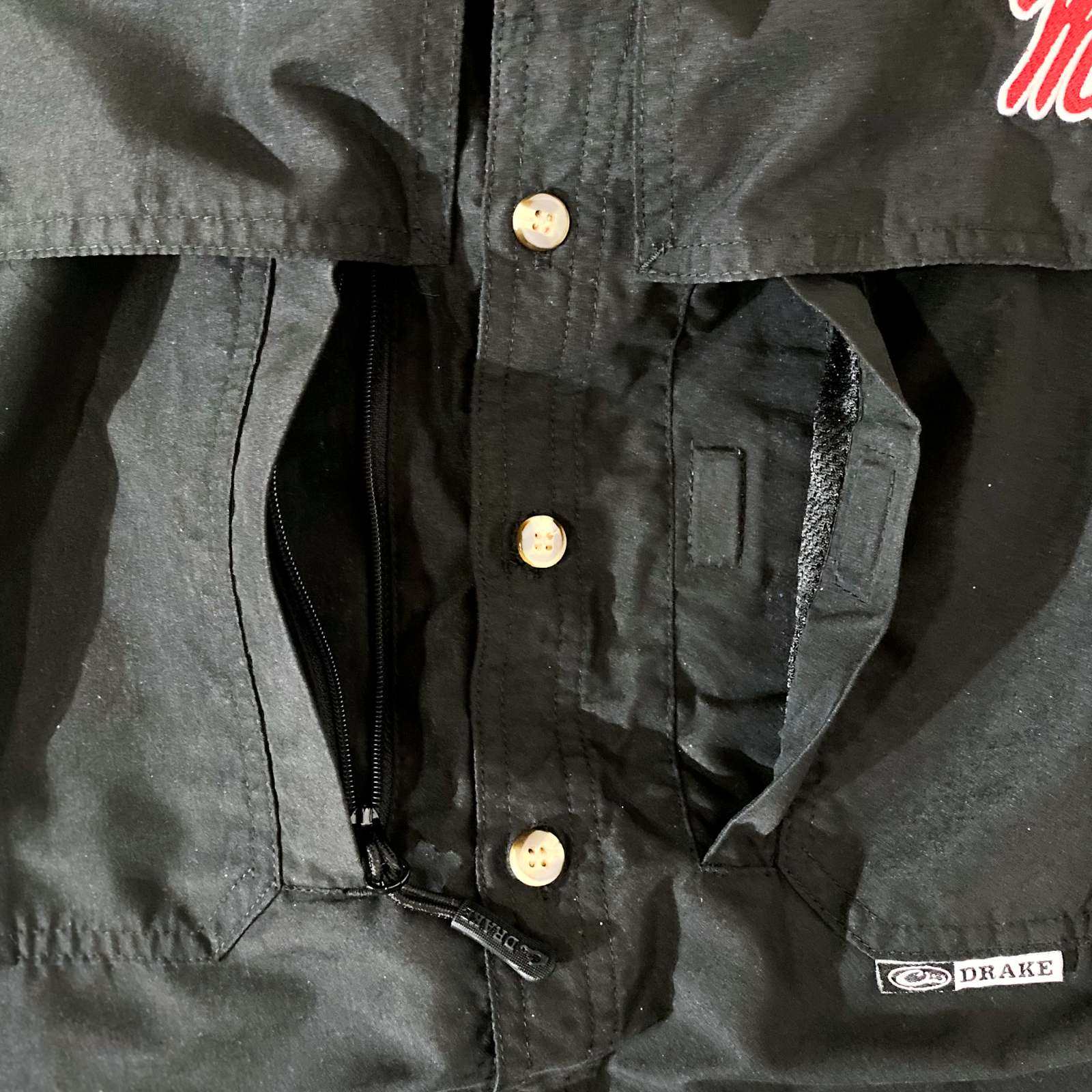 前身頃が大きなポケットになっていてM43のような独特なポケットが魅力的。左右でジップタイプと磁石タイプのアシンメトリーなデザインが古着らしくて面白い!