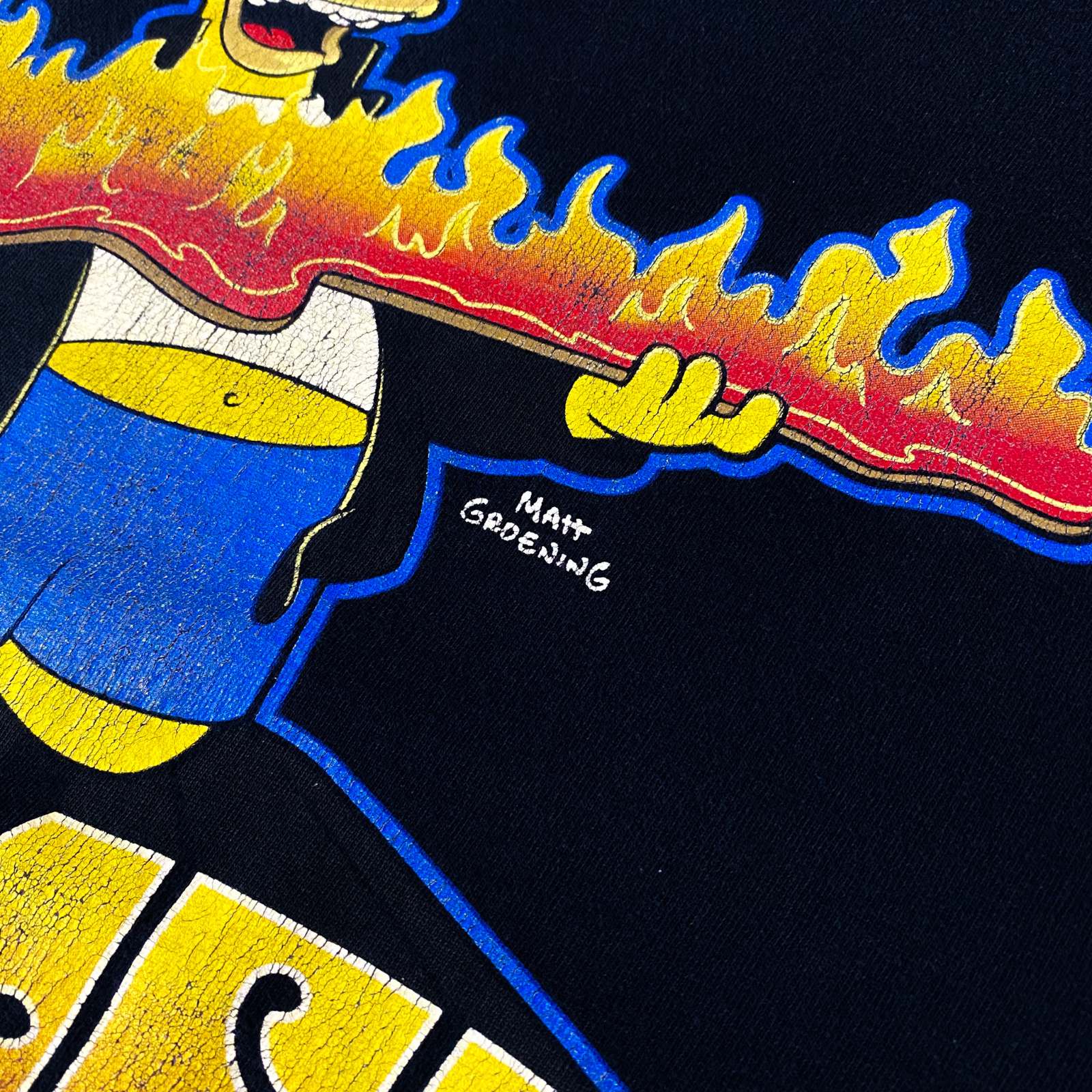 シンプソンズのジミヘンパロディになります。 プリント割れも綺麗に出ていて非常に雰囲気の良い1着。ジミヘンのパフォーマンスである''ギター燃やし''とブラックボディの相性抜群!