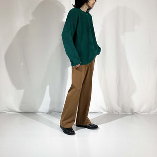 ラグランのリブ編みニットになります。 ラグランで肩に落ち感が生まれる美シルエット。 素材もラミーが使用されているので、通気性や吸水性に優れているので普段使いにもってこい!
