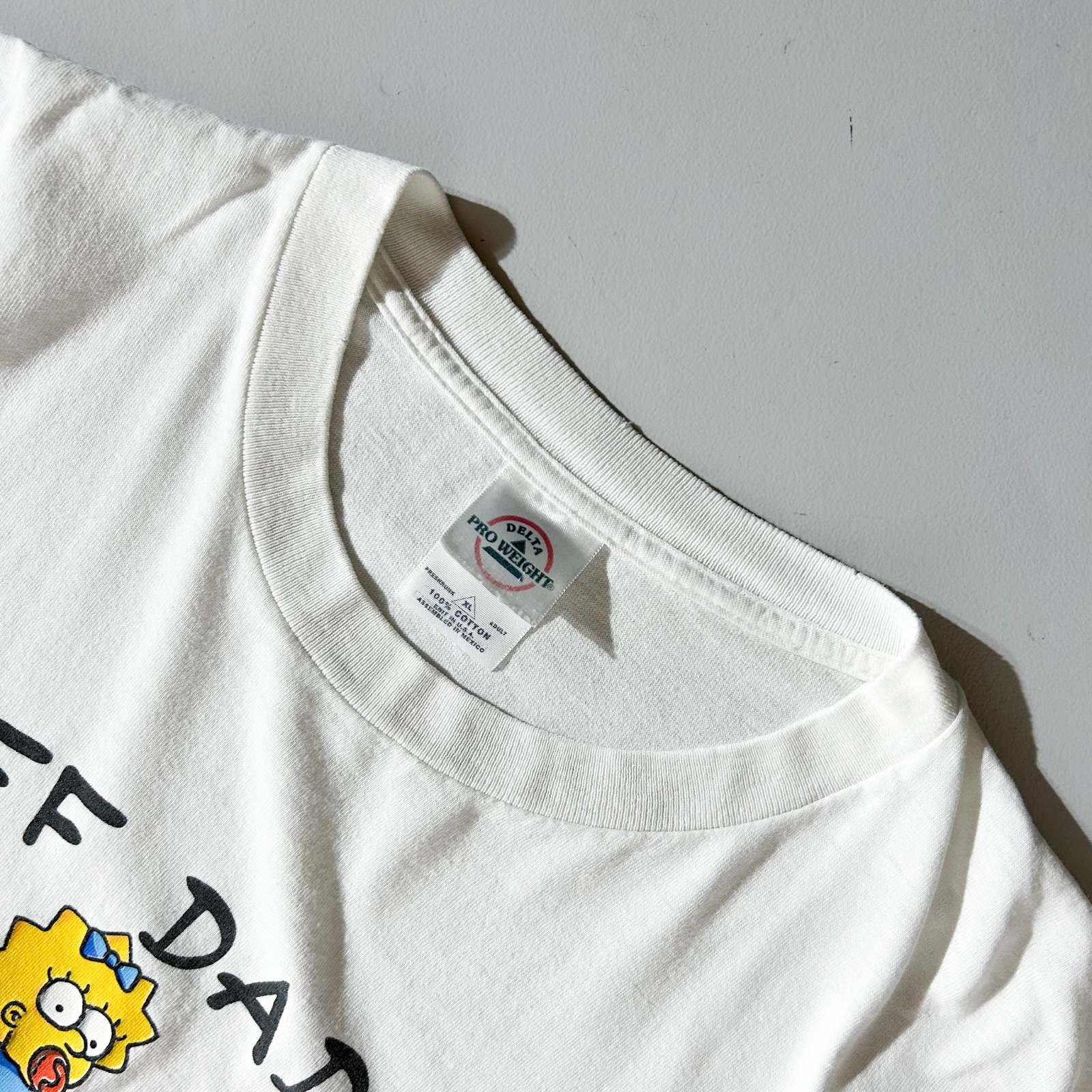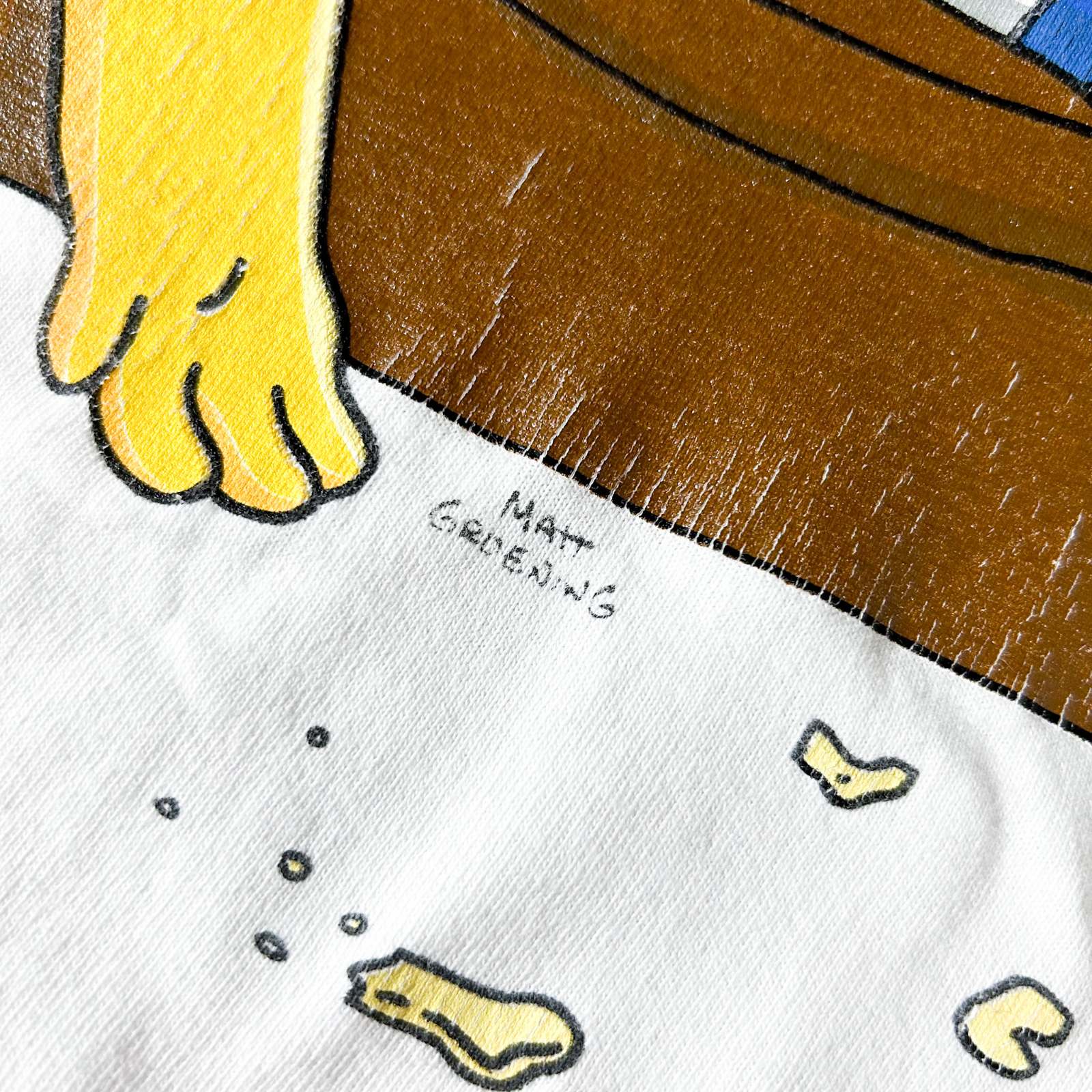 キャラクターTシャツの中で一二を争う人気アニメ『ザ・シンプソンズ』からポップなデザインTシャツの入荷です。コピーライトとマット・グレイニングの文字が入った2000年初頭のオリジナル。