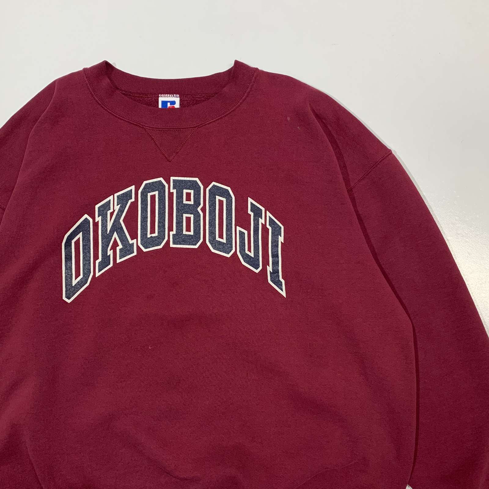 "made in USA" RUSSELL "OKOBOJI" カレッジプリント スウェットシャツ