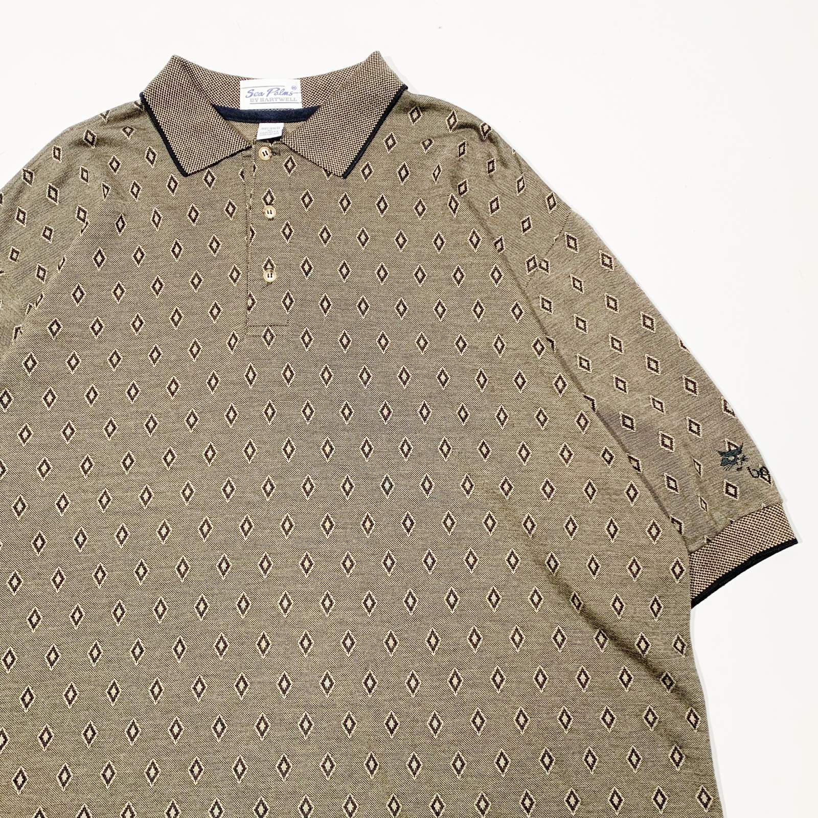 "made in USA" Sea Palms ダイヤ 総柄 ポロシャツ