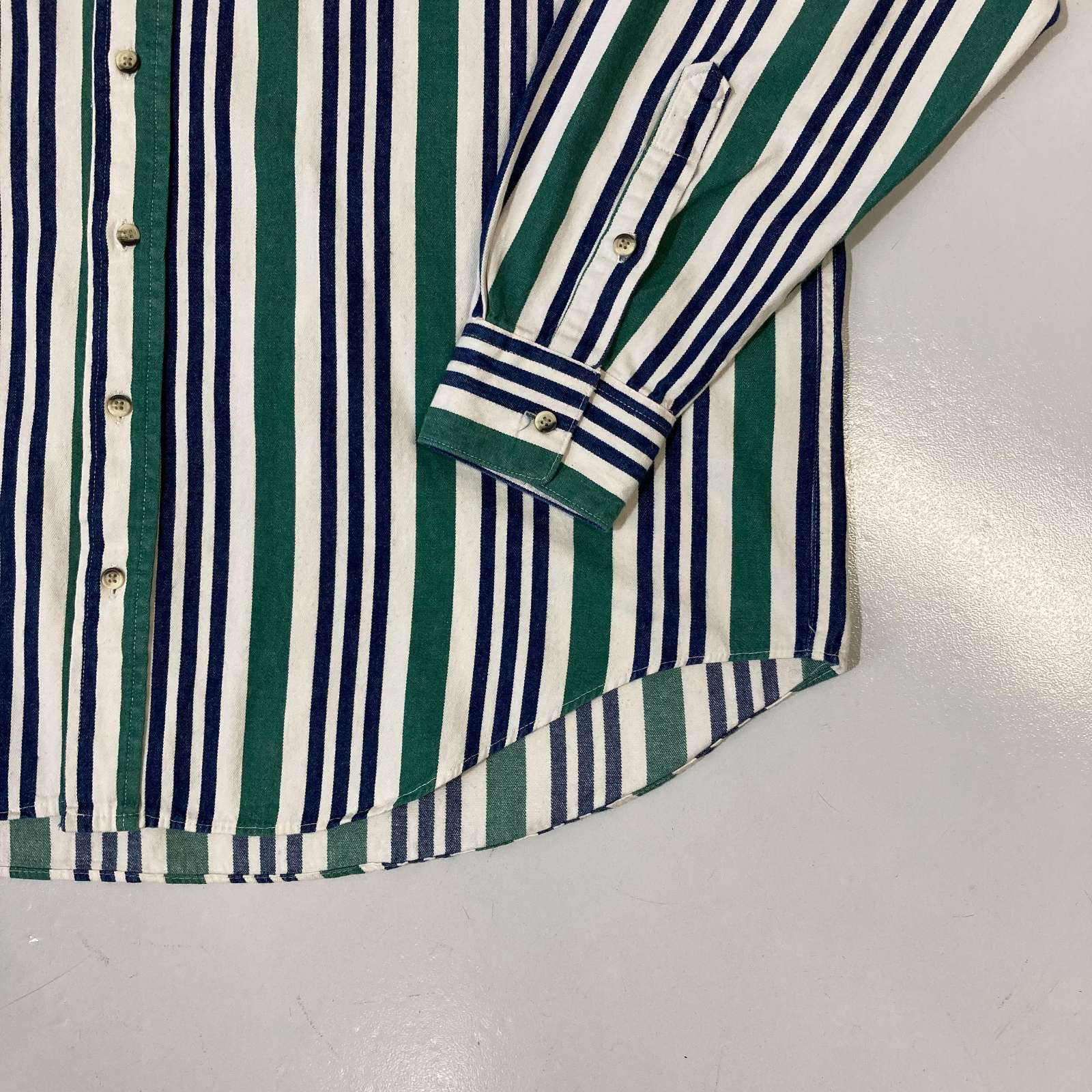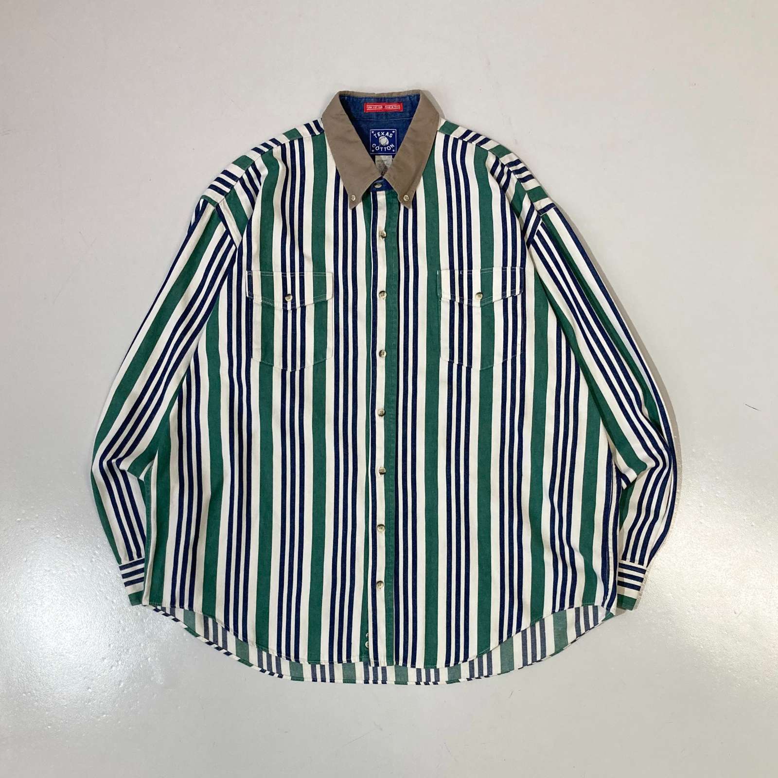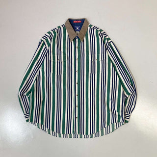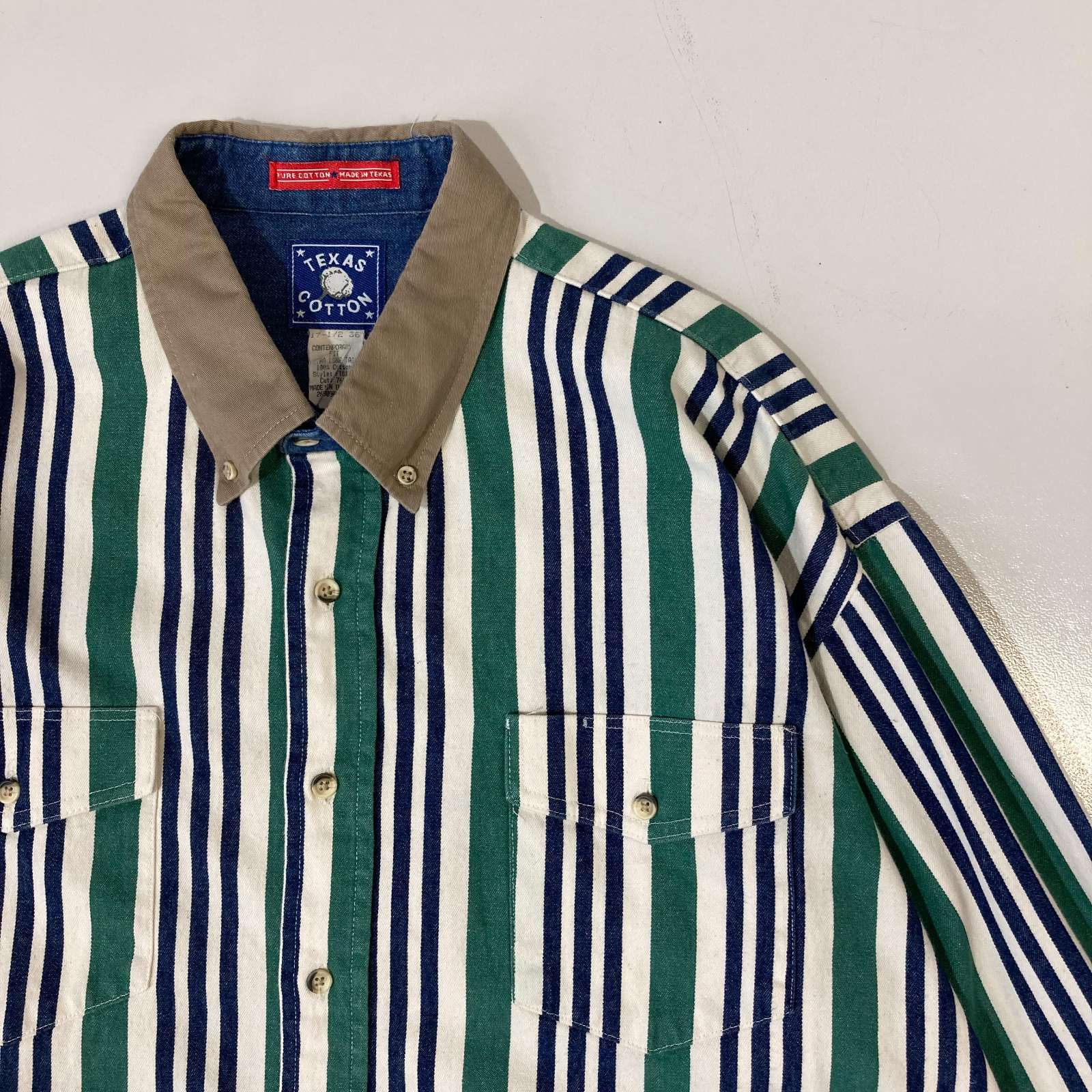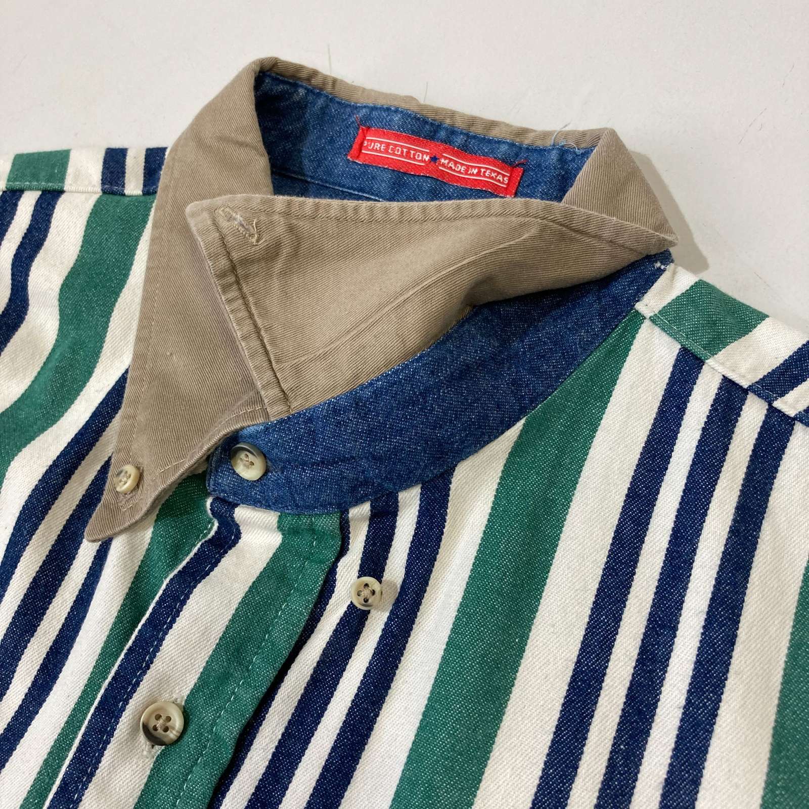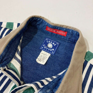 90's "made in USA" TEXAS COTTON L/S 襟切替 マルチストライプシャツ