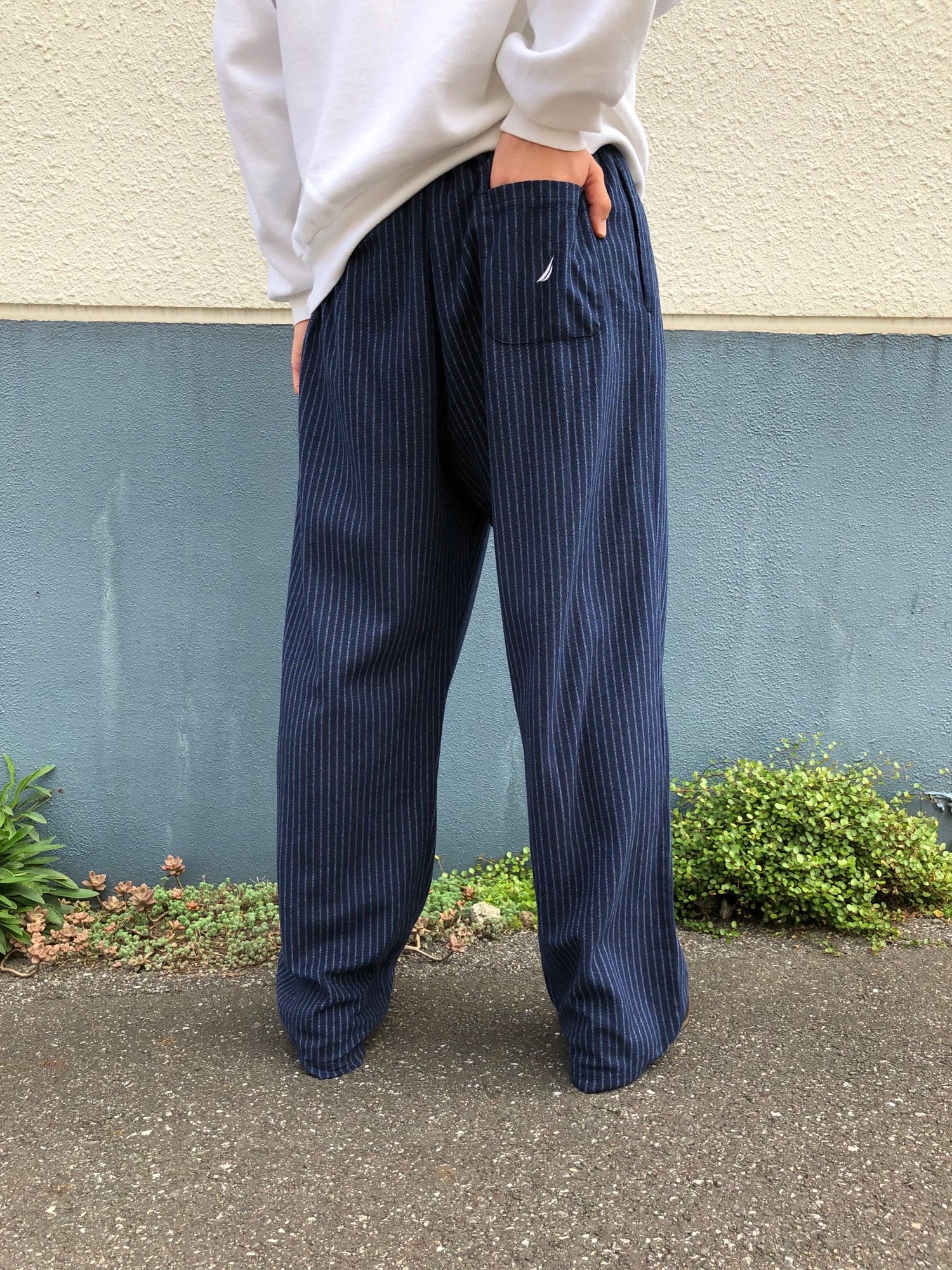 ウエスト紐: ~100cm(~39インチ) 総丈:106cm 股下:74cm(29インチ) 裾幅:23cm