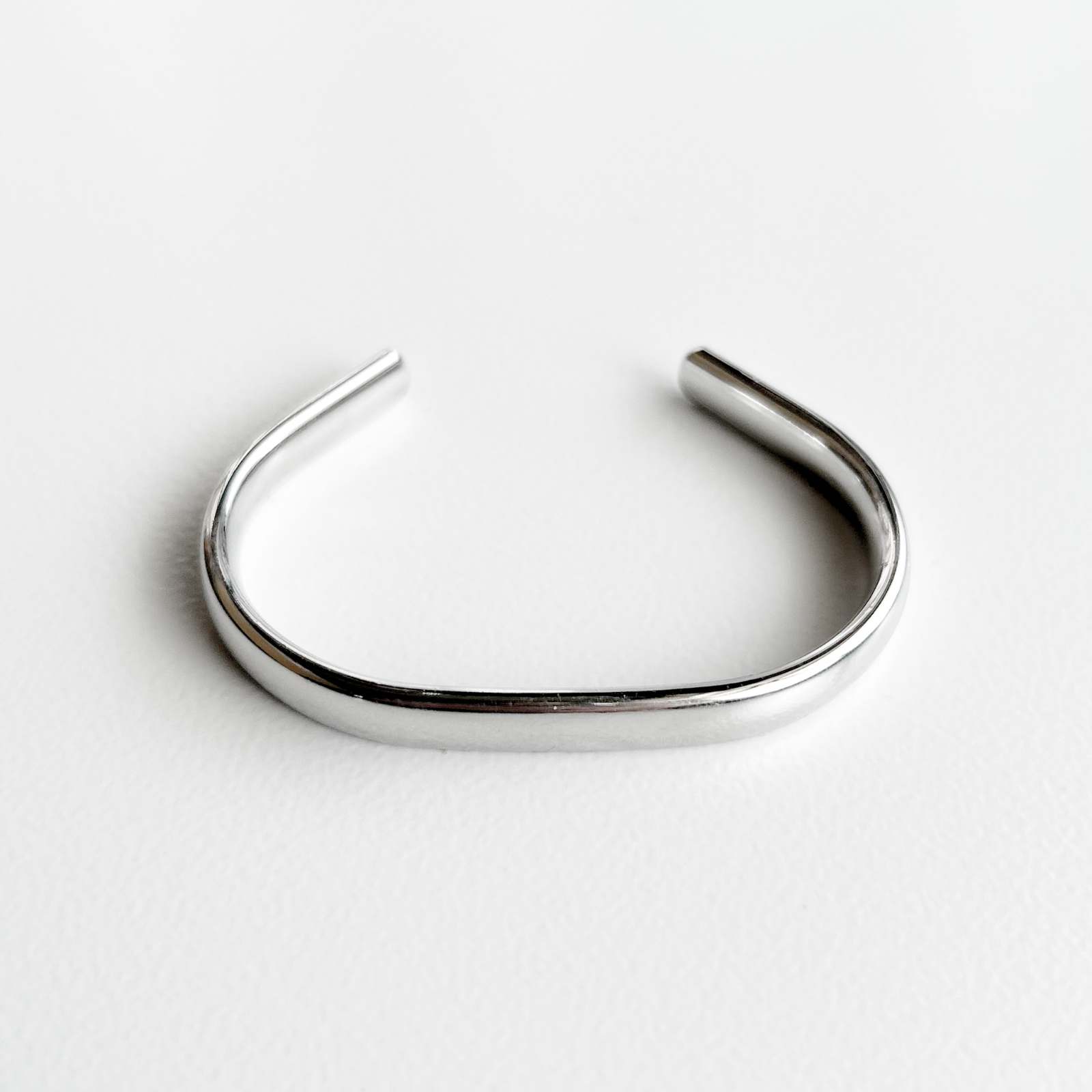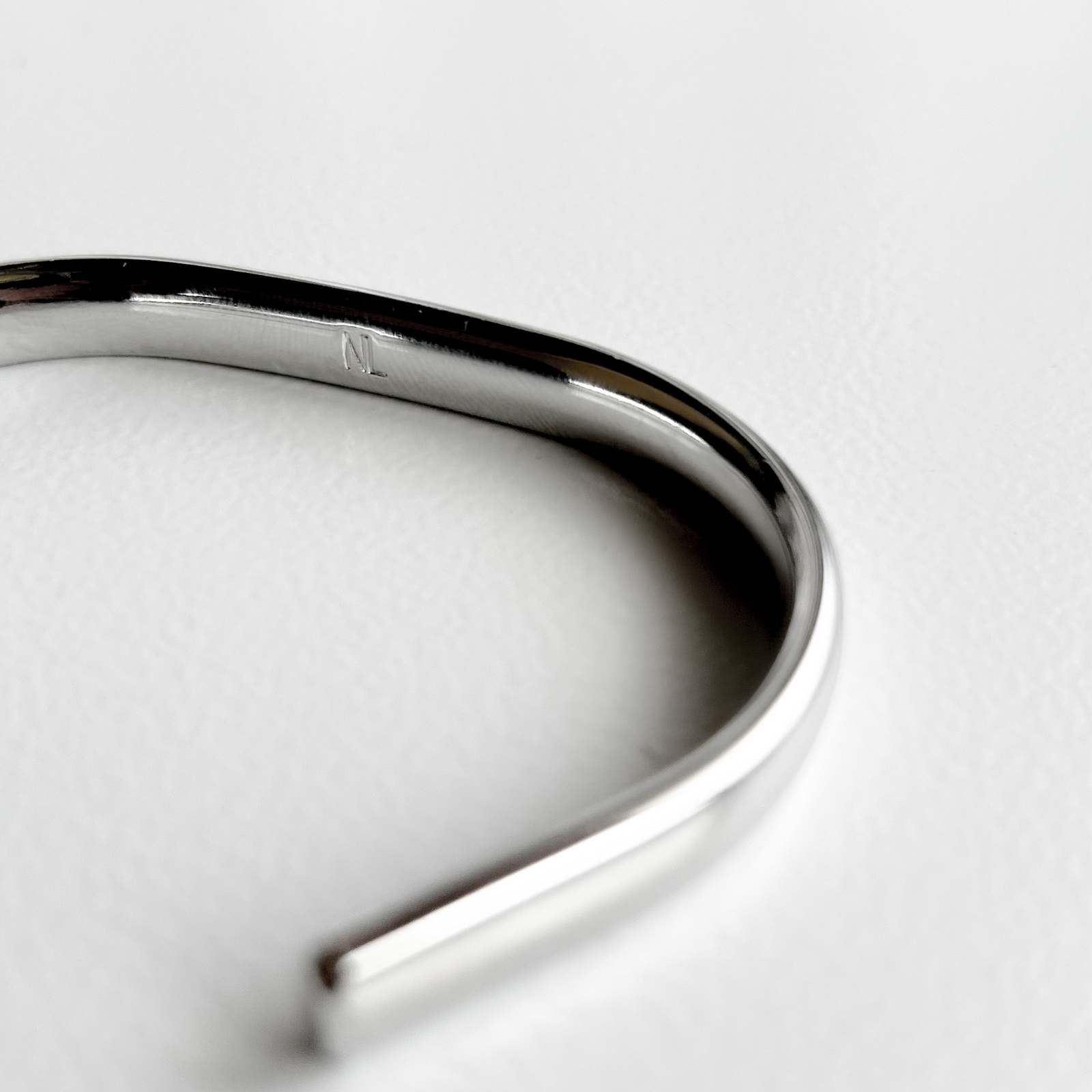 職人の手によって平らな線を1つ1つ丁寧に曲げて製作。空いている側を上して付けることで見え方が変化するブレスレット。 シルバーコーティングで変色・酸化しにくく、高級感ある仕上がりとなっています。NLの刻印入りでハンドメイドで制作しており、個々で風合い色合いが変わっていて経年変化を楽しめるアイテムです。ニールはシンプルベーシック。素材・色・形を極力シンプルに、ひとつのテイストに固めることはせず、機能性、使い心地の良さを追求。身につけた時の着用感、スタイリングした際の心地よさを考えています。