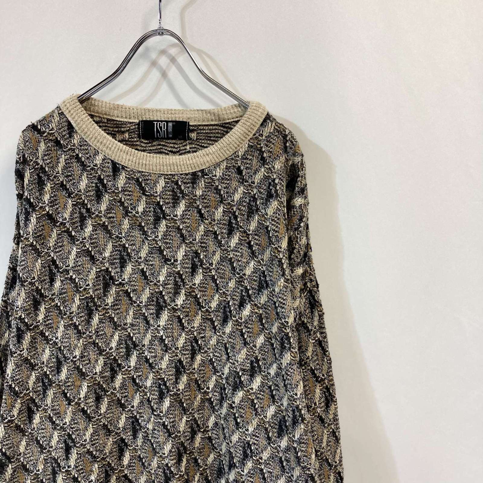90's "made in USA" TSR 総柄3Dコットンニット セーター