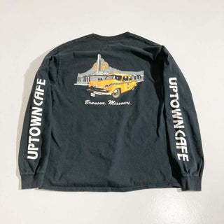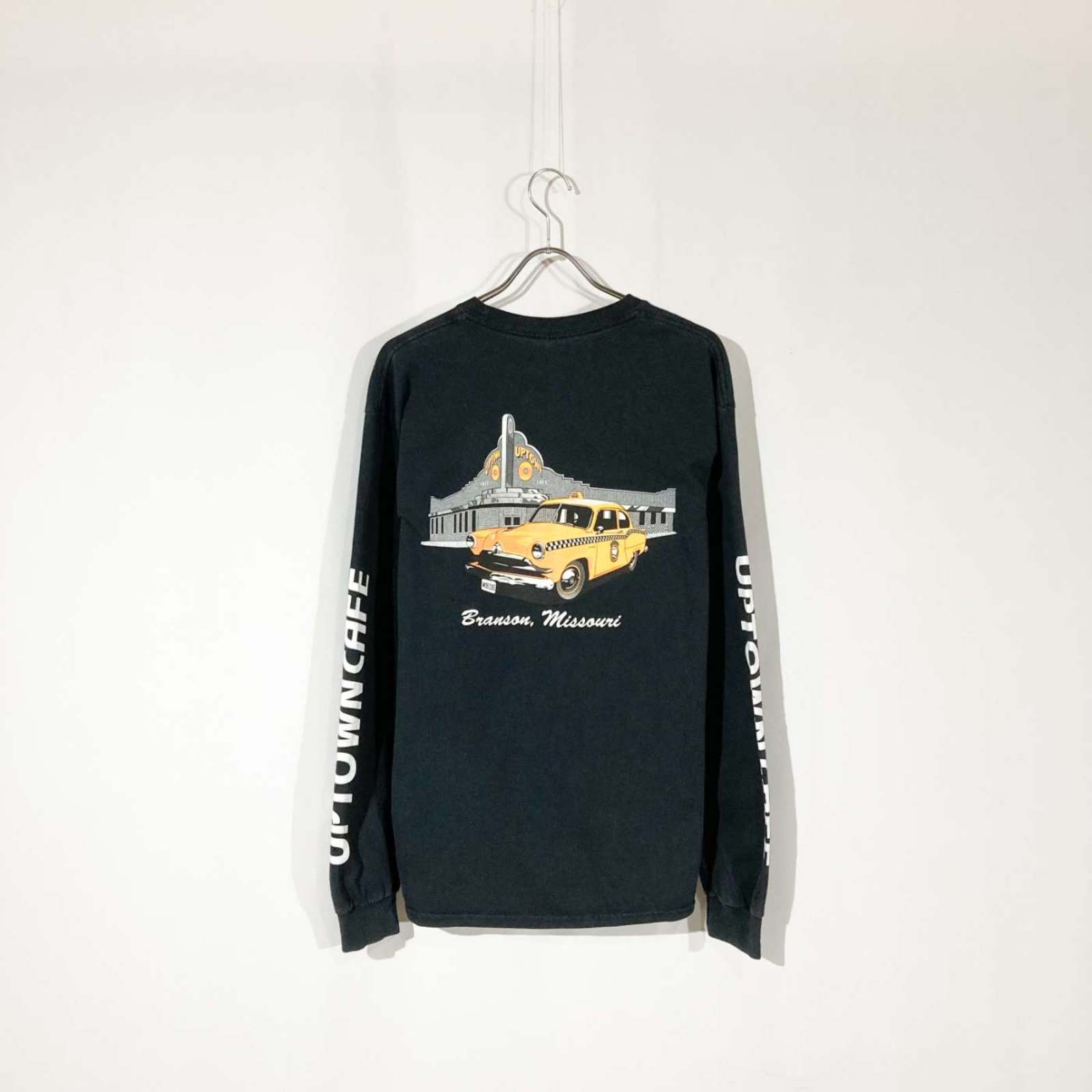 UPTOWN Cafeのカットソーになります。 このクラシックカーのプリント、かっこいいですね!袖にもUPTOWN Cafeの文字がプリントされてます!